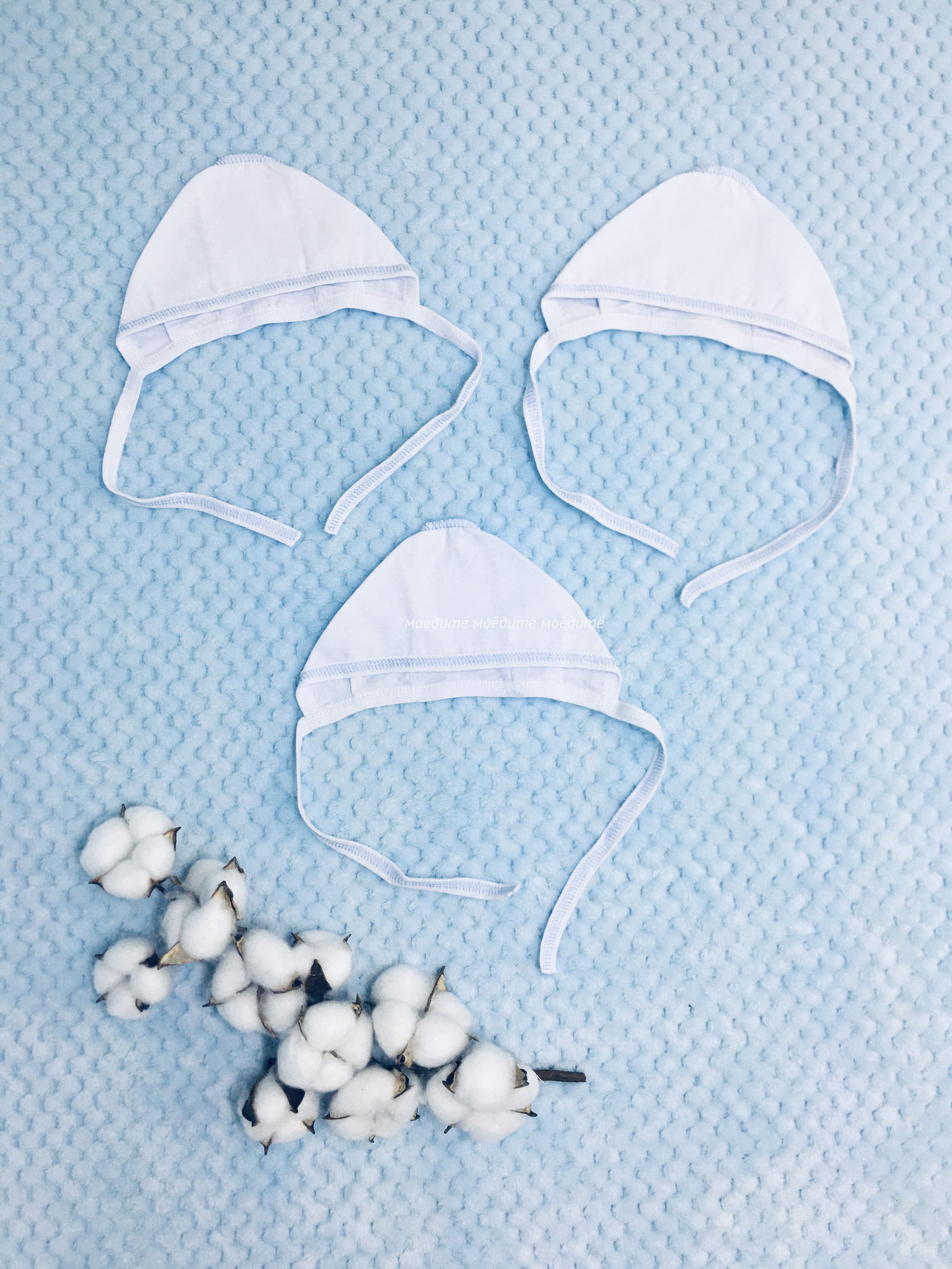 "МоёДитё" чепчик кулирка белый с голубым ЧК015 "Гардения"